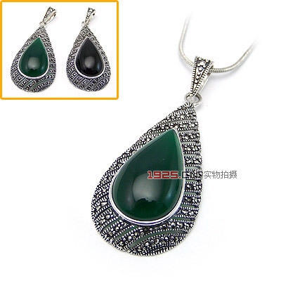 泰银镶嵌玛瑙水滴银坠(颜色随机)|韩国饰品批发|银饰批发|银饰品